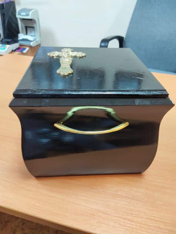 Черная деревянная урна для праха из п/м хвойных пород, размеры 220-220-182 мм.